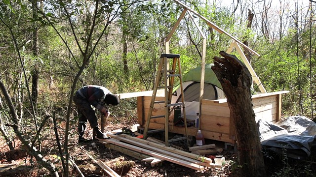 Between 2021-2023, hundreds of people occupied a 517-acre forest in southeast Atlanta to prevent the construction of a privately funded police training center, the largest in the country. The occupation's basic function was to slow time: delaying construction until the project became too expensive or unpopular to continue. I became interested in the challenge of sustaining everyday life and wanted to explore it on film. Filming in the occupation was constrained by an intense security culture -- most people, anticipating state repression, used pseudonyms and avoided cameras. I found that a deliberate, observational approach enabled me to work creatively within this constraint, as it gave Fruitbat and me time to develop trust in each other and in our abilities as carpenter and filmmaker. Fruitbat accepted a great deal of risk in allowing me to film, as did I; the film is, among other things, a record of shared risk and trust.